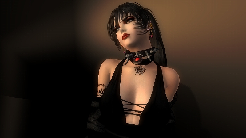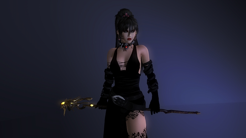 ちなみに、衣装はBlackmarsh Witch as Clothing HGEC(海外サイト) というMODです(チョーカーと杖はApachiiさんのお店で売られていたもの)。